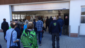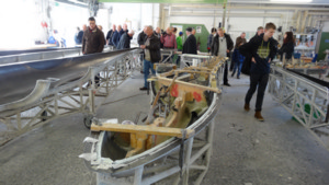 Kurz nach 10:00 Uhr trafen wir bei schönstem Sonnenschein in Poppenhausen beim ältesten und einem der erfolgreichsten Segelflugzeugbauer der Welt ein. Manfred Münch, ein Mitarbeiter des Unternehmens „Alexander Schleicher Flugzeugbau“, zeigte uns in einer zweistündigen Führung alle Fertigungsetappen für ein hochwertiges Kunststoffsegelflugzeug. Dabei ging es rückwärts von der Endmontage, über den Metallbau (Fahrwerk, Triebwerkshalterung und Rudergetriebe), die Rumpfmontage (Inneneinbauten), die Lackierung und die Herstellung der Rumpf- und Tragflächenschalen. Wir erfuhren dabei viel Spannendes und gewannen Einblicke in das Unternehmen, welches seit mehr als 80 Jahren am selben Standort mitgewachsen ist. Somit gibt es auch manchen Kompromiss bei Transport und Fertigung und neben viel Handarbeit bei der Flugzeugherstellung wird auch so manches Flugzeugteil treppauf und -ab getragen.